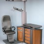 Refraction unit with fixed height sliding table for two instruments, with electromagnetic locking of table arm, with embedded chest of four drawers, with chair with electric height adjustment. Available only in right handed version.